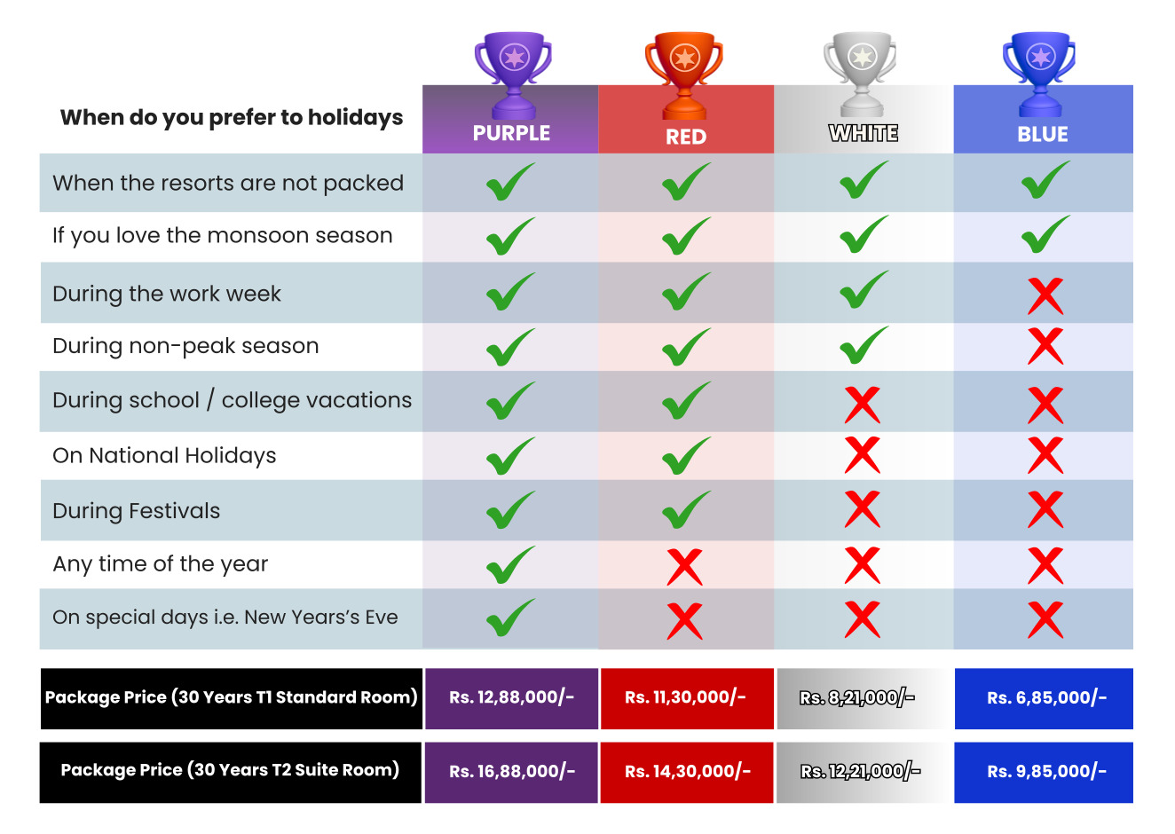 We have designed various packages to suit individual holiday needs and budgets as follows-